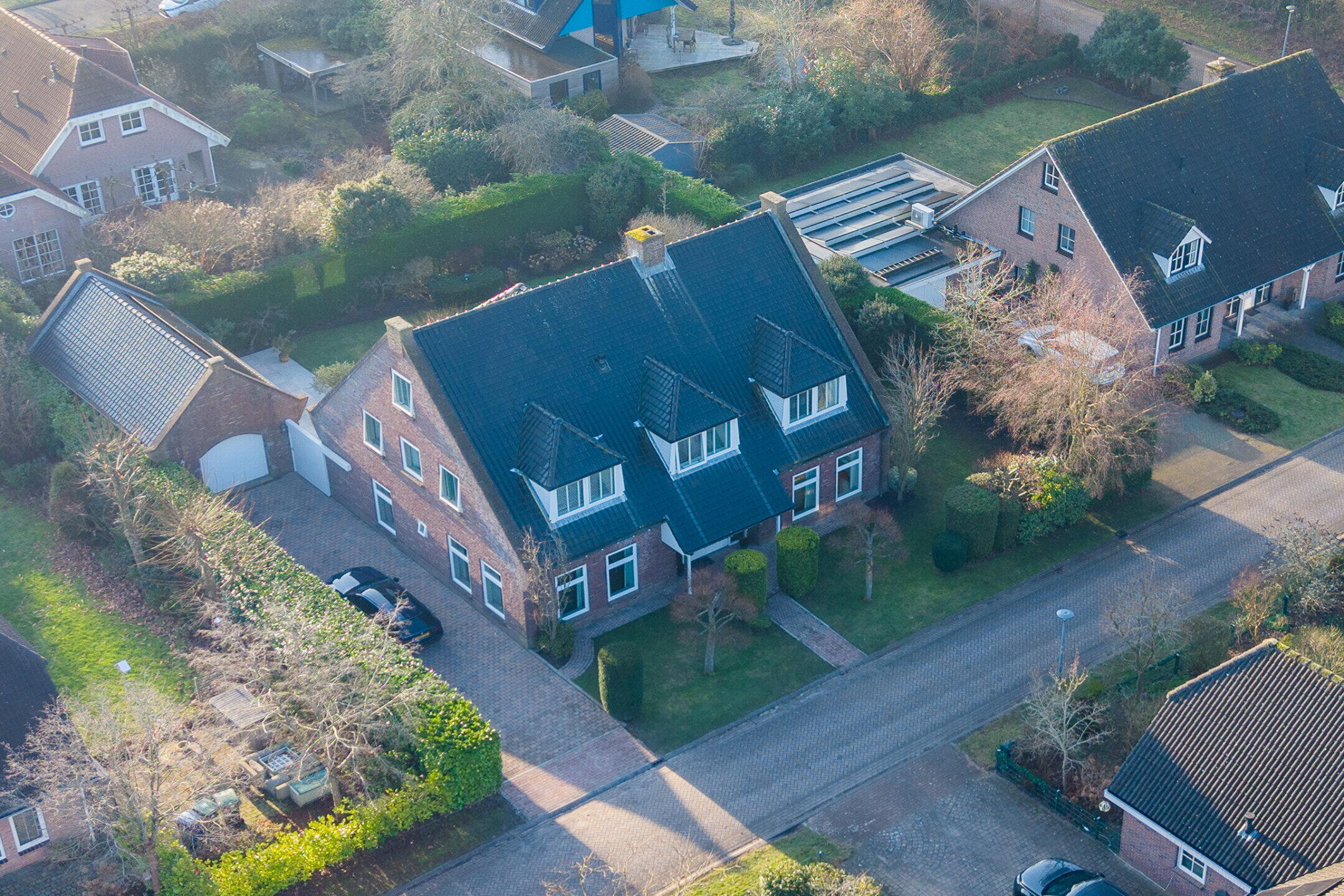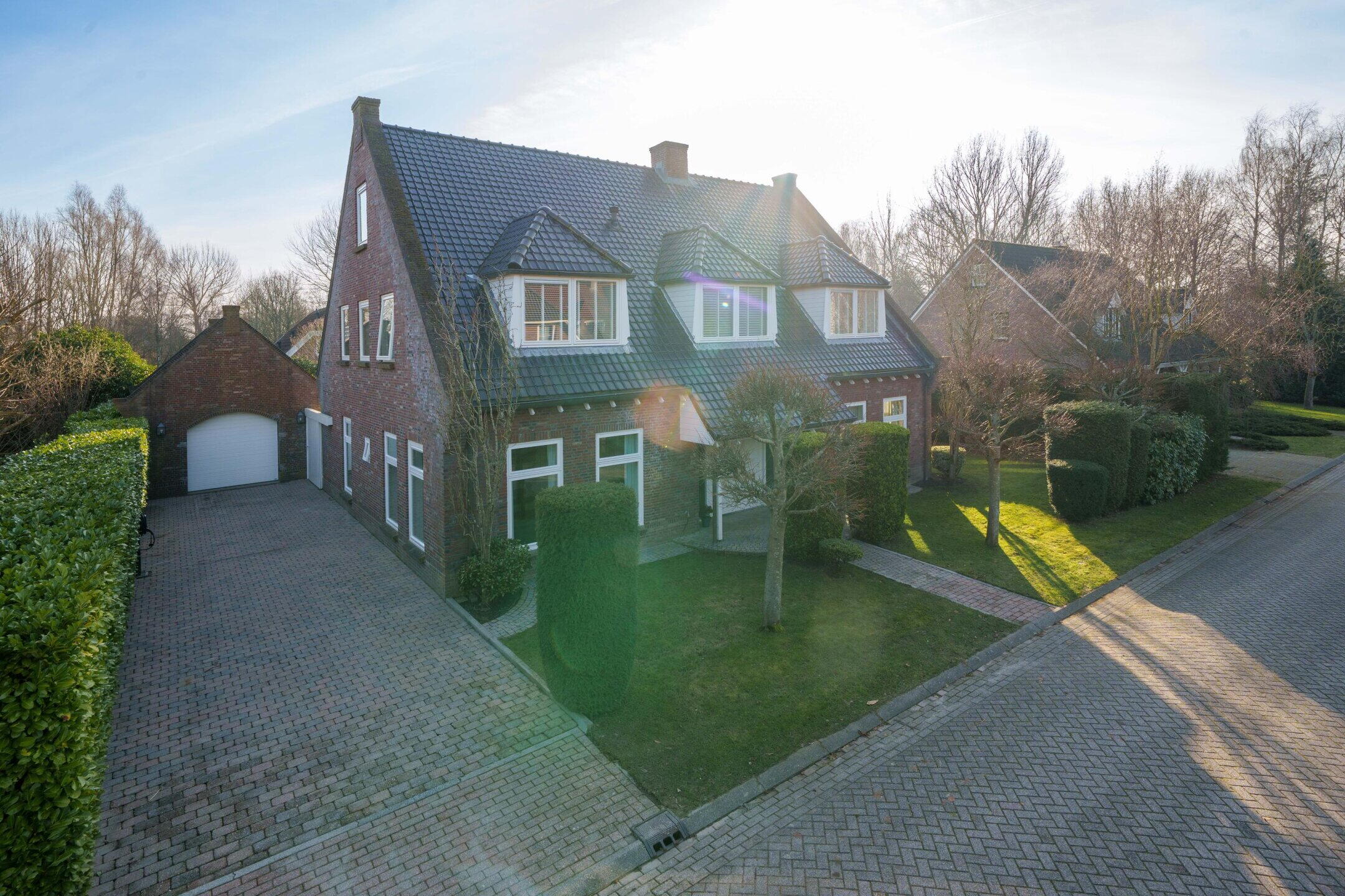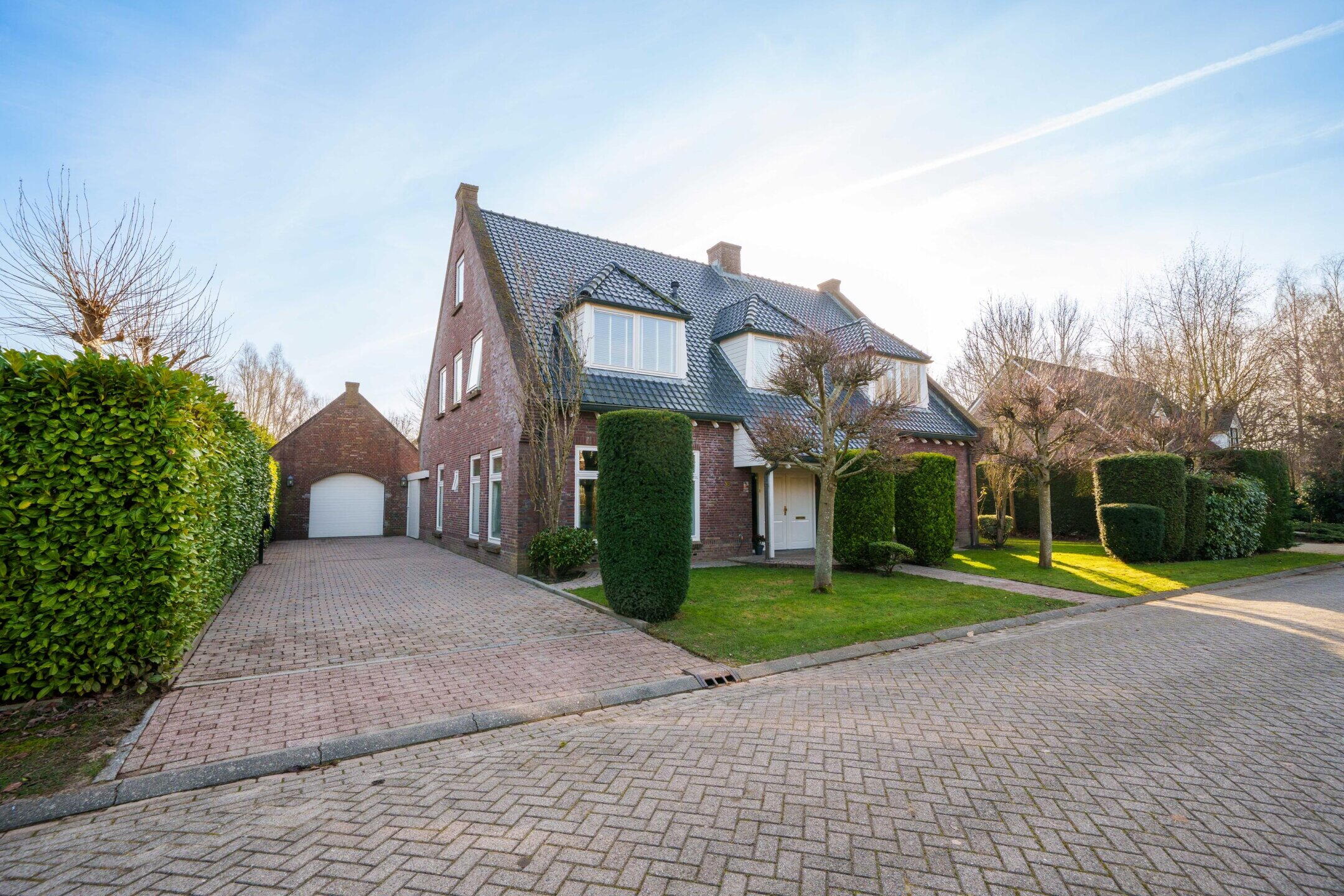 Naast de woning bevindt zich een ruime oprit met parkeergelegenheid voor maar liefst vier auto’s. De oprit is voorzien van een eigen laadpunt en geeft toegang tot de vrijstaande garage. Deze garage beschikt over een extra verdieping, die uitzonderlijk veel extra (opslag)mogelijkheden biedt. De garage leent zich uitstekend voor gebruik als werkplaats of atelier en kan desgewenst ook worden verbouwd tot een volwaardig bijgebouw, kantoor aan huis of zelfstandige studio.