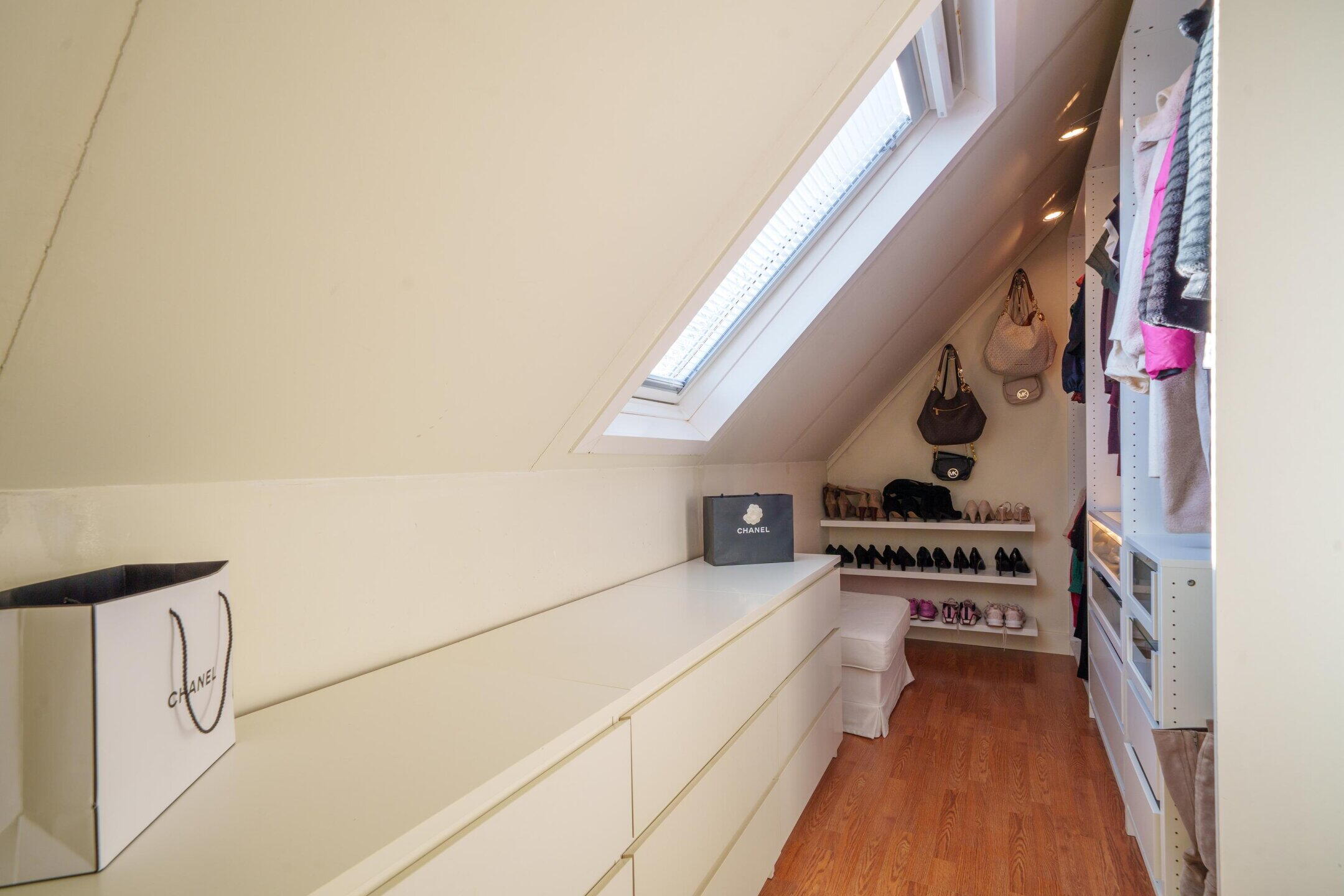 De hoofdslaapkamer is bereikbaar via dubbele deuren en beschikt over een ruime inloopkast. Het is zelfs mogelijk om in deze slaapkamer een haard te realiseren, het rookkanaal is reeds aanwezig.