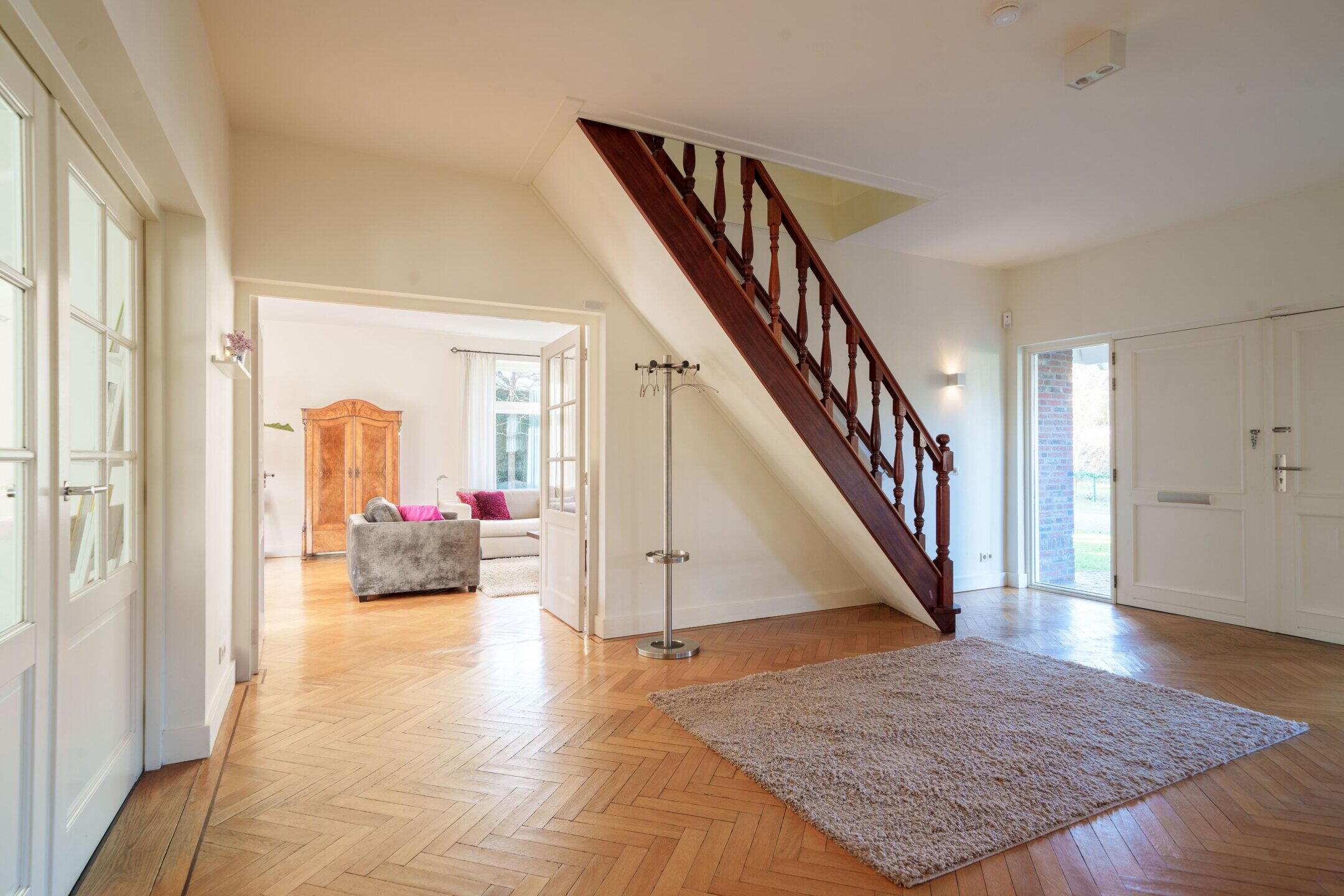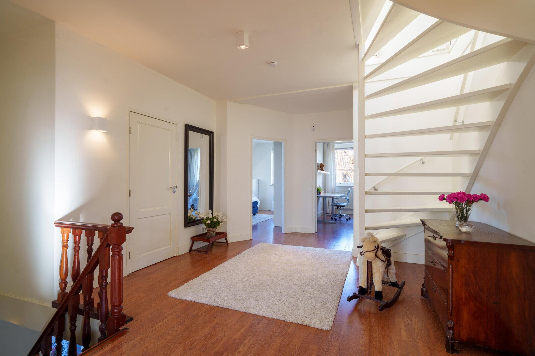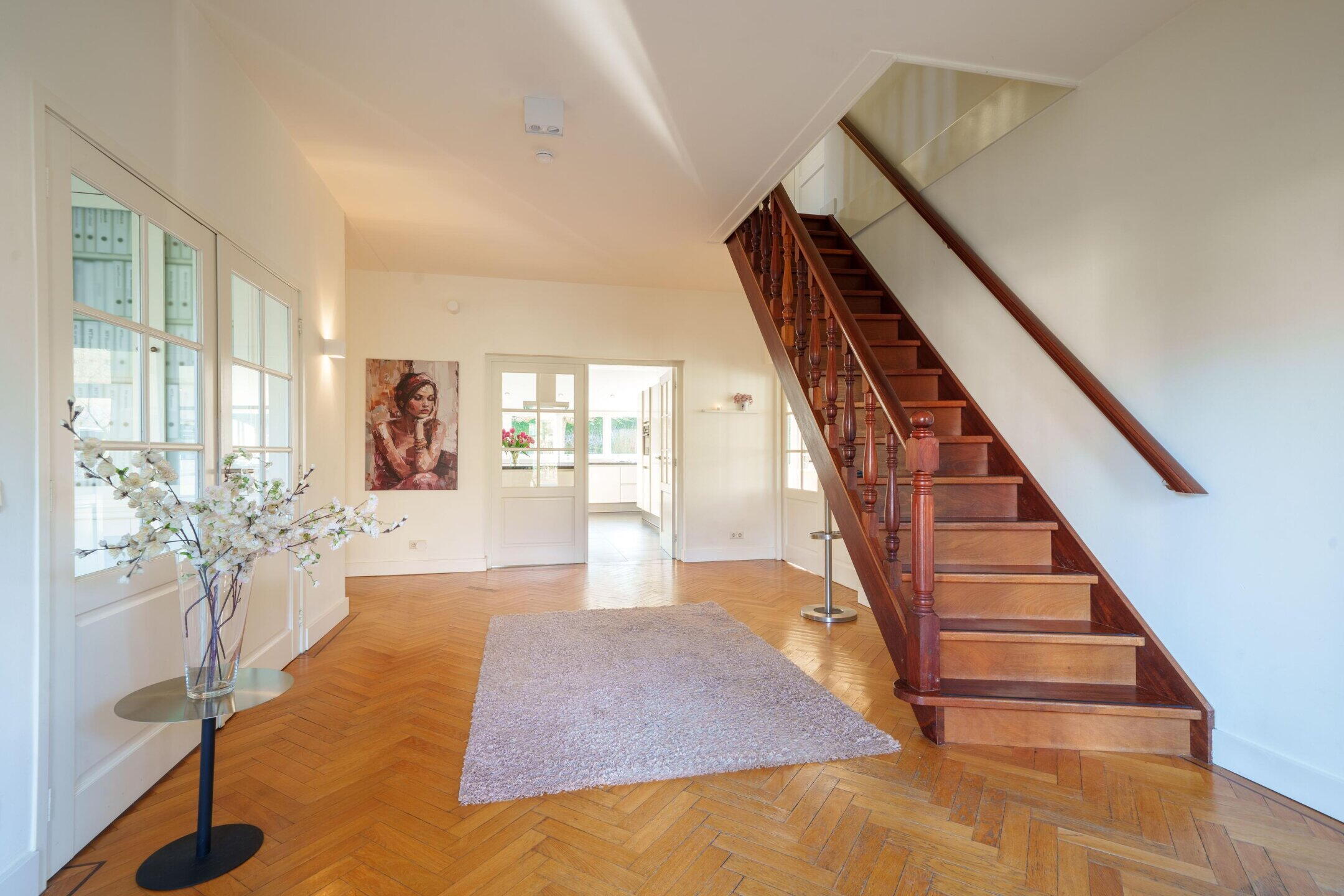 De trap in de entreehal leidt naar de eerste verdieping.
