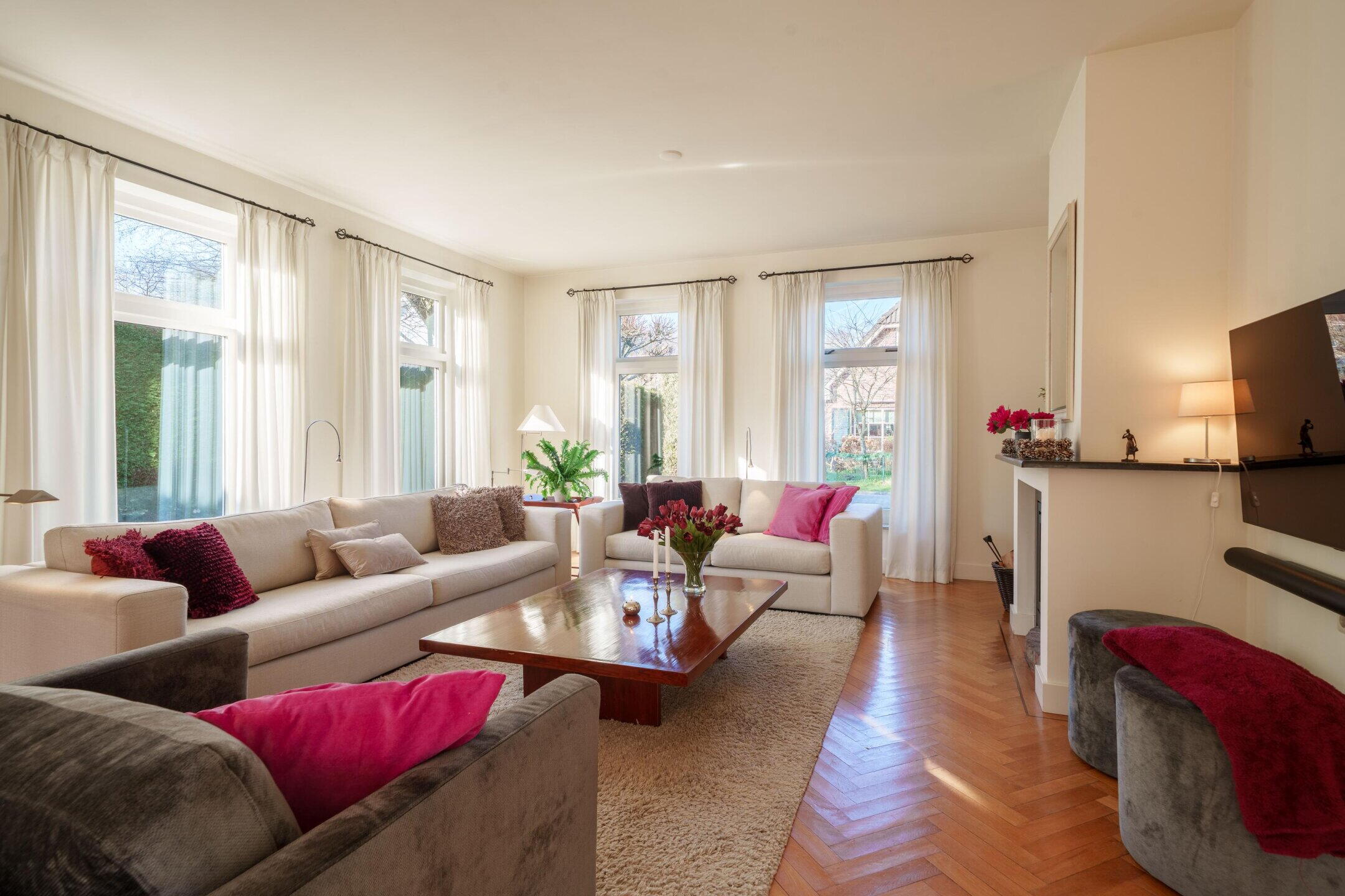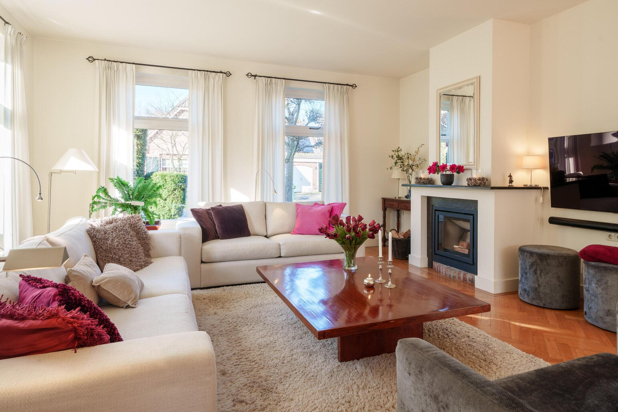 • Riante woonkamer met een sfeervolle haard en veel lichtinval